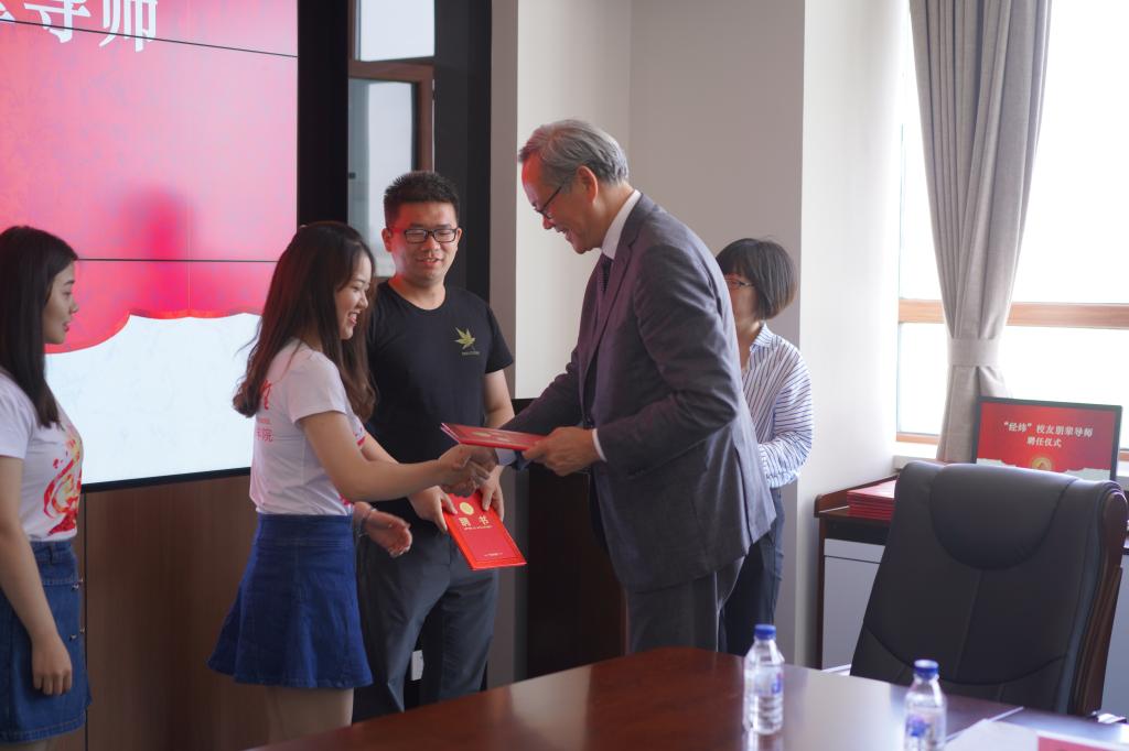 会议首先进行的是“经纬”校友朋辈导师聘任仪式。按照学校人才培养要求,提升学生升学率和出国率,ylzzcom永利总站线路检测出台《“经纬”大学生思想政治教育培养方案》,方案以提升学院人才培养质量为目标,以思想政治教育为经线,以教学为纬线,实现纵向分类指导,横向分层次引导,搭建具有经济学科特点的人才培养矩阵。方案按照学生对未来的规划为学员配备“经纬”校友朋辈导师,通过一对一指导、线上讲座等多种形式,指导学生保研、考研、出国留学、就业等相关事项。首批聘任保送清华大学周圣钧等17名毕业生为“经纬”学业发展校友朋辈导师,聘任留学杜克大学王健光等7名同学为“经纬”留学服务校友朋辈导师,聘任选调到中组部杨琳璞等7名毕业生为“经纬”就业指导校友朋辈导师。党委书记陈密、院长李晓、党委副书记张倩分别为获聘毕业生颁发聘书。
