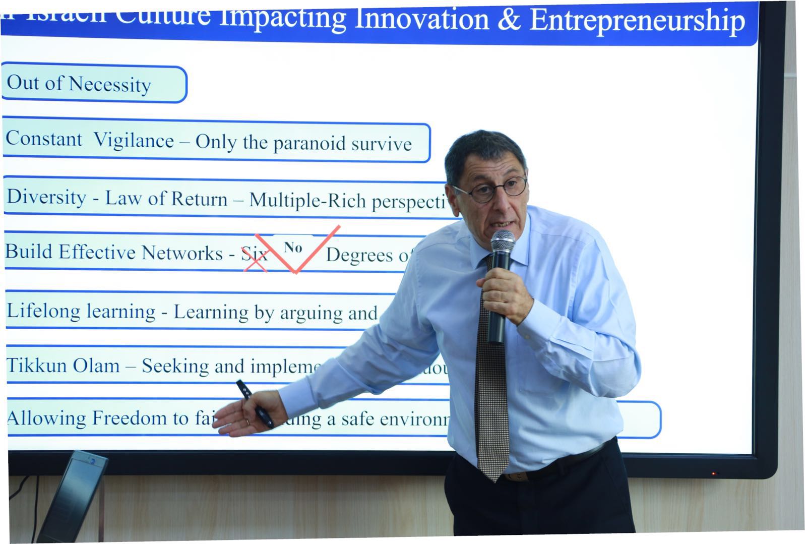 约西·达什蒂博士在演讲中详细介绍了以色列在科技创新方面取得的突出成就,并从犹太文化、创新生态系统、创新创业机制等方面深入系统解释了以色列成为创新国度的深层次原因,介绍了中国其他地区与以色列开展合作情况,并归纳出中以合作的若干有效途径。他指出,以色列必须寻求全球协作,而中国无疑是理想的合作伙伴。吉林省与以色列之间的创新合作既面临机遇也面临挑战,但只要找到合适路径,经过有关各方共同努力,就一定能够使吉林省与以色列之间的创新合作取得更大成功、实现互利多赢。