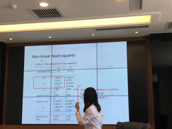 栾富舒博士首先详细介绍了空间计量模型和GIS模型的理论及应用。之后,栾富舒博士介绍了中国高铁建设的历程,以及开通高铁前后一些城市的经济变化以及人员流动情况,并且通过实证研究发现中国人口伴随的高铁的开通呈现加速流动的态势,并且人员流动在原有从北向南流动的基础上,开始从西向东流动。同时,中国高铁的开通进一步加深了中国区域经济发展的不平衡。座结束后,栾富舒博士还对教师与同学们提出的问题进行了详细的解答。