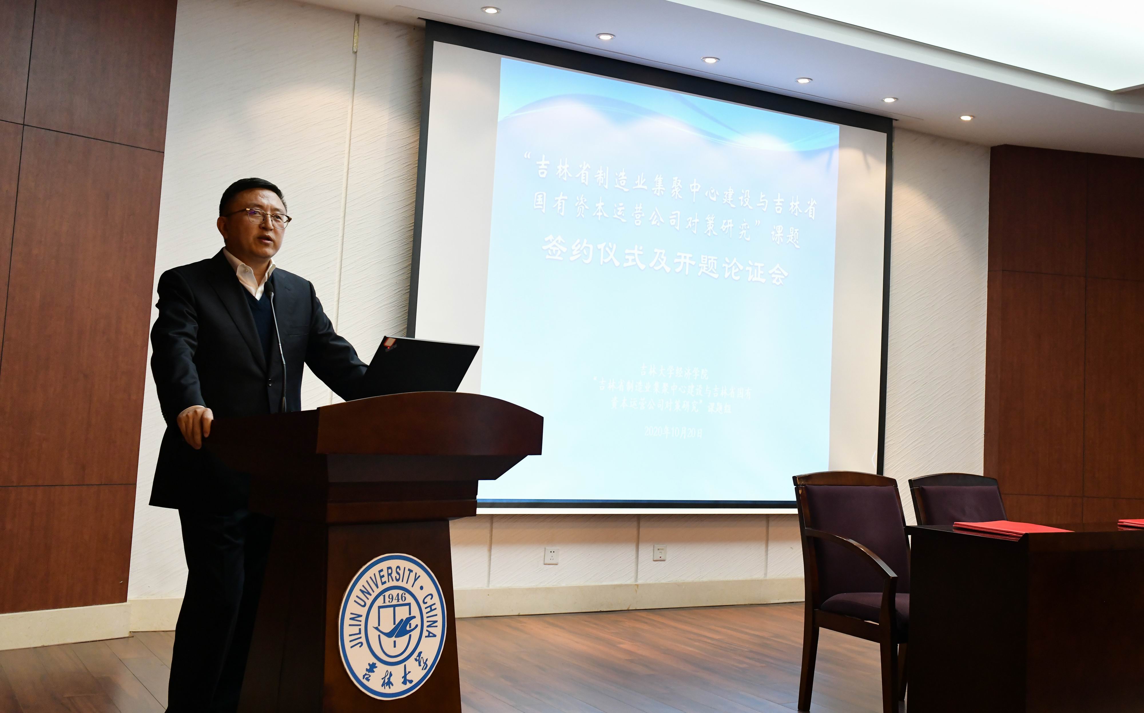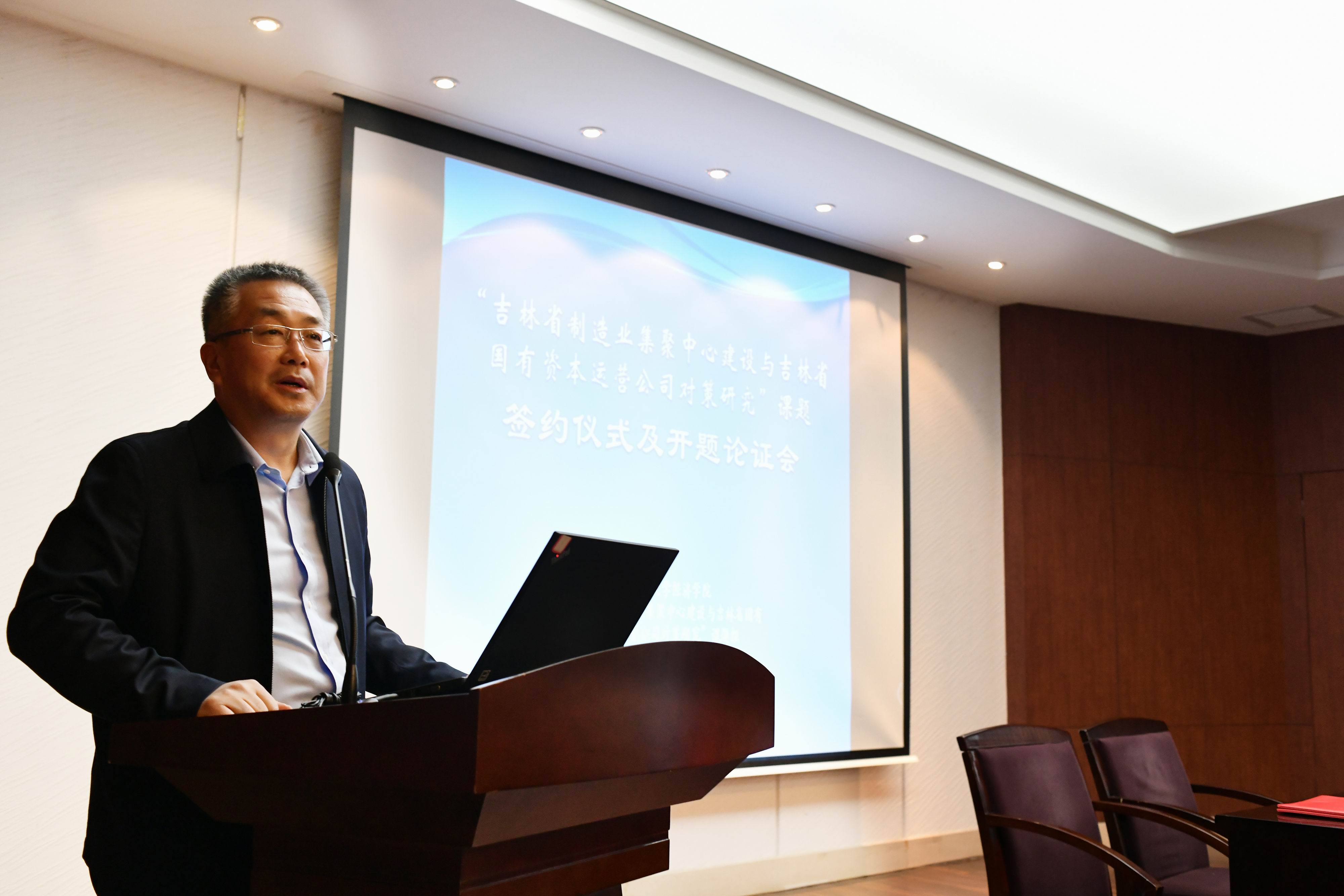 2020年10月20日,由ylzzcom永利总站线路检测和“吉林省制造业集聚中心建设与吉林省国有资本运营公司对策研究”课题组主办的课题签约仪式暨开题论证会在ylzzcom永利总站线路检测成功举办。吉林省国有资产监督管理委员会王刚副主任、ylzzcom永利总站线路检测副校长蔡立东教授、吉林省国有资产运营有限公司张志新董事长、北京大学新结构经济研究院学王勇副院长、ylzzcom永利总站线路检测社科处处长姚毓春、吉林省国有资产运营有限公司王成总经理、吉林省办公厅综合七处柏旭处长、吉林省国有资产运营有限公司刘莉莉副总经理等领导以及“吉林省制造业集聚中心建设与吉林省国有资本运营公司对策研究”课题组成员出席了会议。