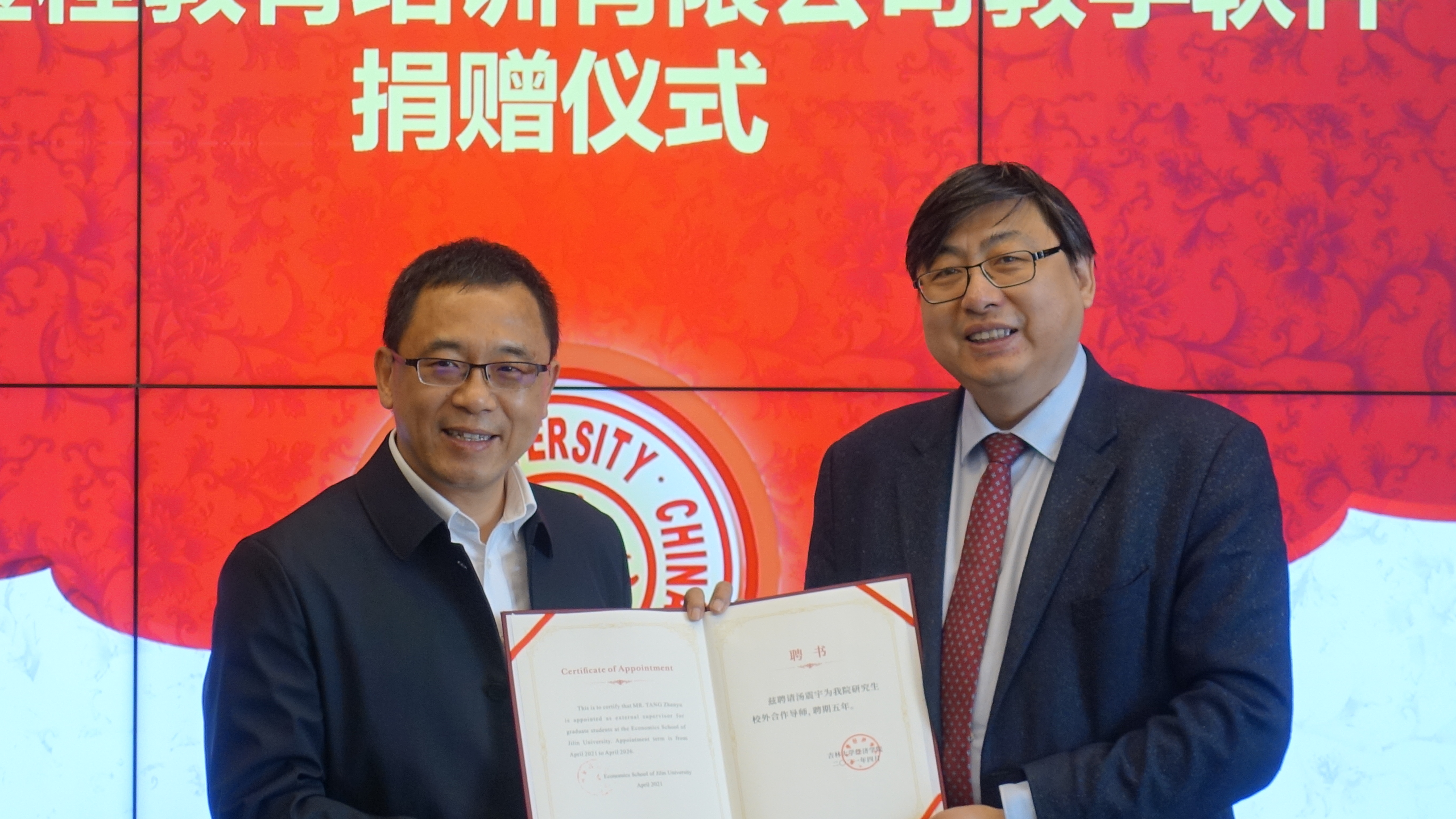 ylzzcom永利总站线路检测党委书记聂宏凯老师、院长丁一兵教授为汤震宇博士颁发了捐赠证书和捐赠纪念牌。