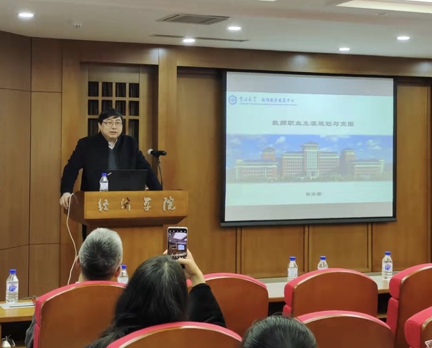 2021年11月11日下午,ylzzcom永利总站线路检测教师教学发展中心副主任、法学院博士生导师田洪鋆教授在东荣大厦804会议室为经济学院师生作了题为“教师职业生涯规划与突围”的专题报告。ylzzcom永利总站线路检测院长丁一兵教授出席并致辞,副院长邵学峰教授主持,宋洋教授、于乃书副教授、刘朝阳副教授、王皓副教授等中青年教师以及近70名师生参加了报告会。