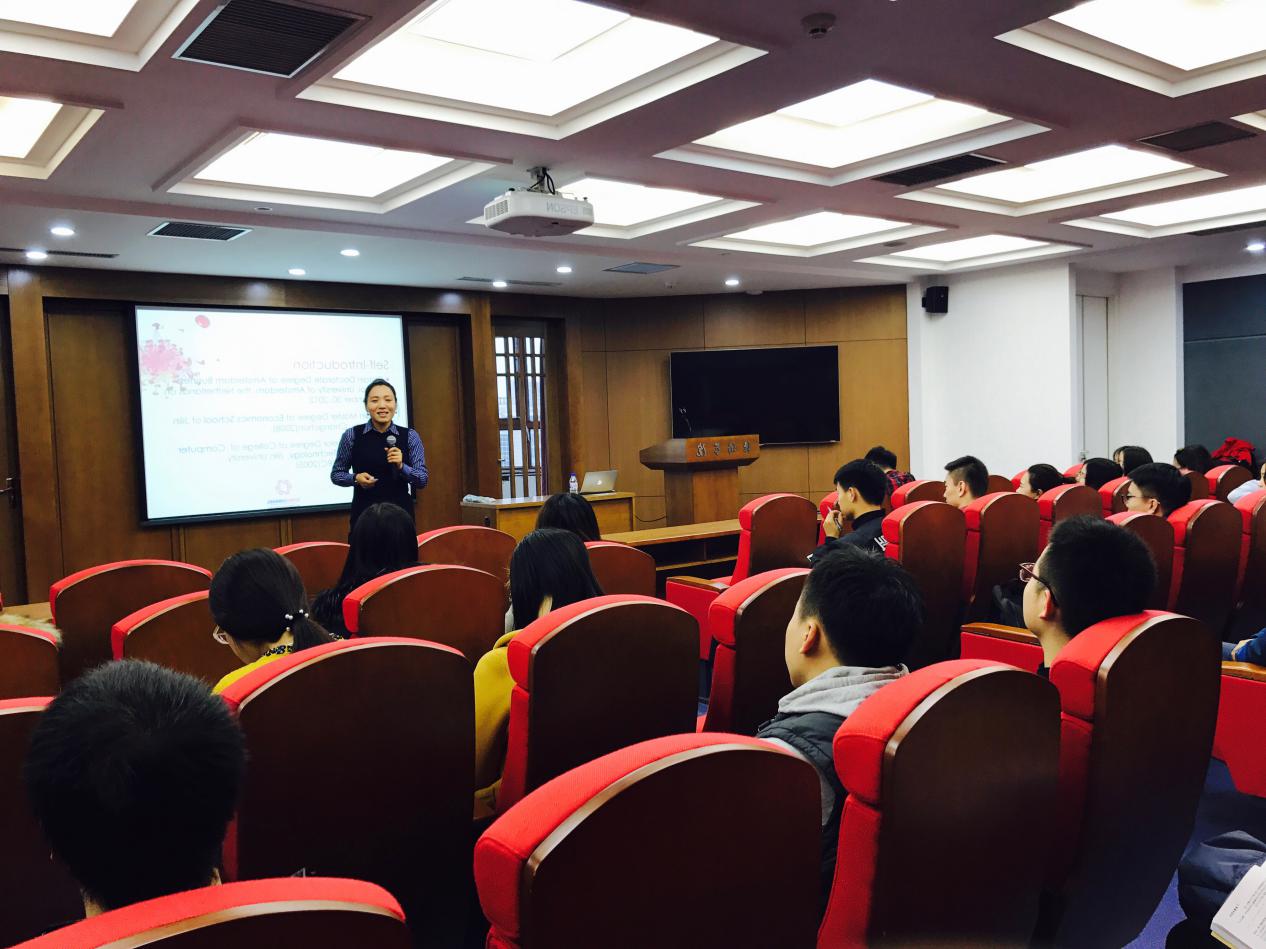 首先,宋洋老师根据在荷兰阿姆斯特丹商学院的求学及任教经历,介绍了自己的留学申请原因和过程,她坦言“资金”和“邀请函”是最重要的敲门砖,她的申请成功离不开国家留学基金委的资助,偶然的时机加之必然的努力,使出国成为“当时最好的选择”。接着她从学习篇,生活篇,旅行篇三个方面详细介绍了丰富多彩的留学生活,使同学们既了解了荷兰独特的学术会议,导师制度和答辩过程,又领略了国外特色的生活方式、社交氛围和文化风俗,明白了要在学术上保持自由认真,“与国际接轨”;在生活上包容文化,找到积极的兴趣爱好,因为“每一件事都积攒成现在的你”。
