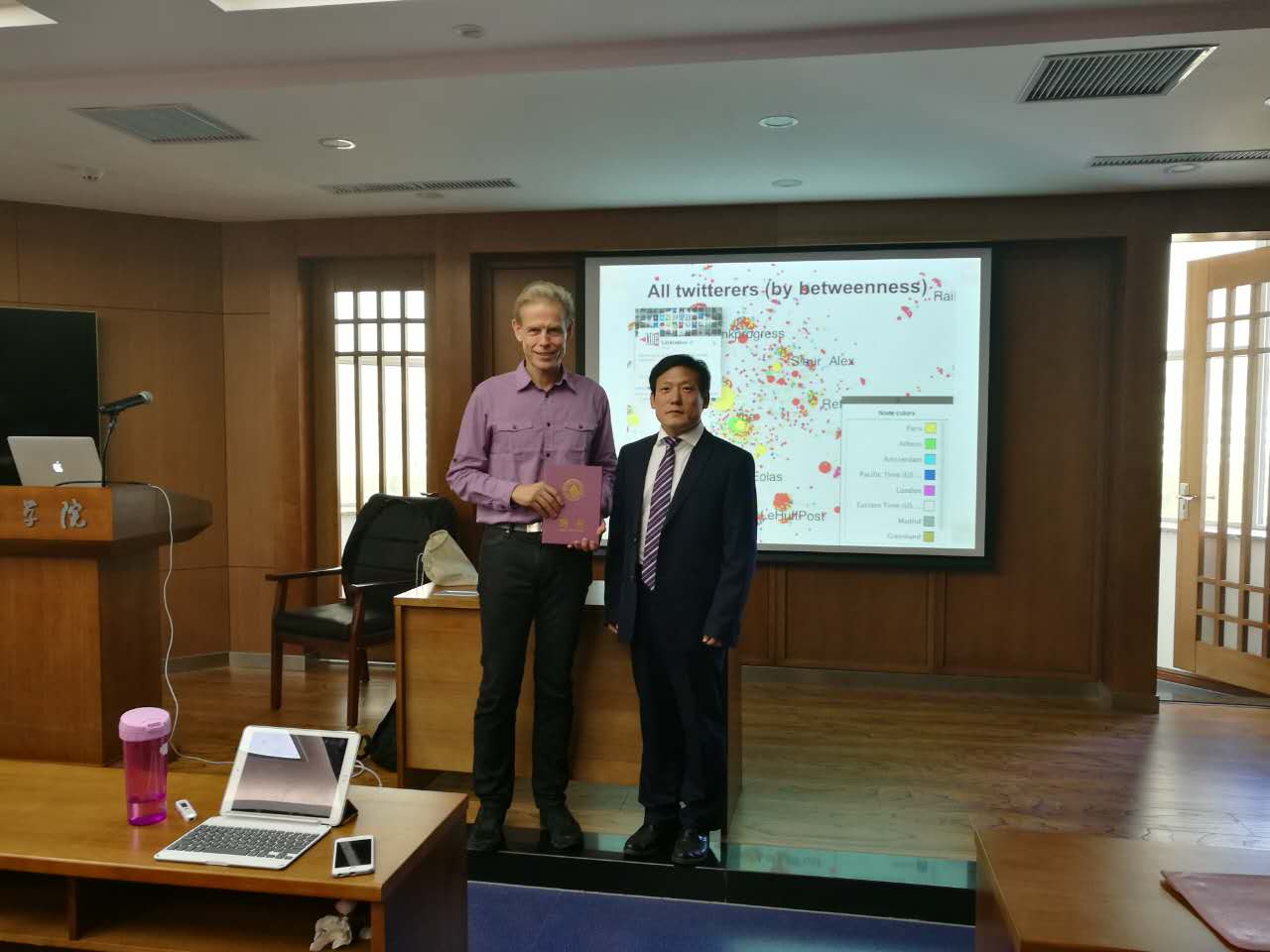 讲座中,Gloor教授结合社交媒体的检测、机器学习以及大数据方面的前沿观点,向与会师生展示了如何通过社交媒体分析组织内部甚至全球内集体认知。Gloor教授还解释了六个测量合作的可靠指标,均可通过社会网络分析得以实现。Gloor教授表示,他将作为沟通吉大ylzzcom永利总站线路检测、麻省理工大学、瑞士GDI研究所、德国科隆大学等高校院系之间的纽带和桥梁,组织不同国家、不同背景的学生进一步通过社交媒体研究跨学科的社会现象,最优项目获得者将有机会获得资助赴底特律参加2017年的COINS国际研讨会。