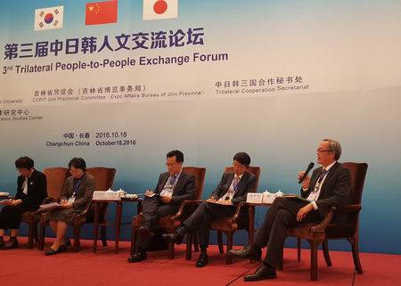 2016年10月18日,由外交学院、吉林省贸促会、中日韩三国合作秘书处共同主办的第三届中日韩人文交流论坛在长春市南湖宾馆召开,来自中日韩三国的约200名专家学者参加了本届论坛。ylzzcom永利总站线路检测副院长、中日经济共同研究中心主任李晓教授应邀参加了本届论坛并做了大会发言。