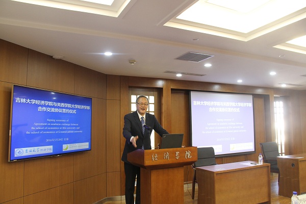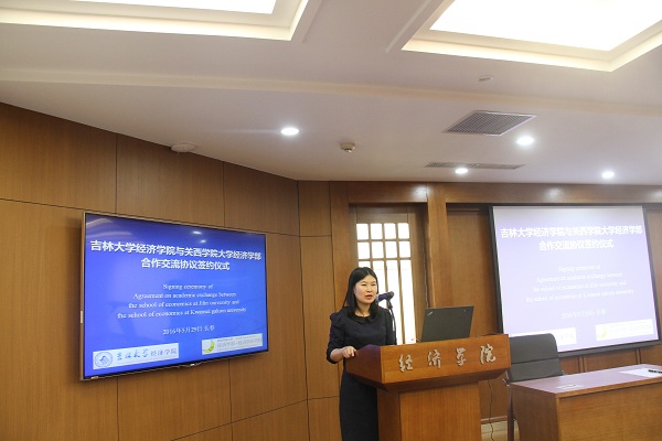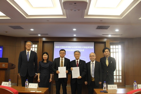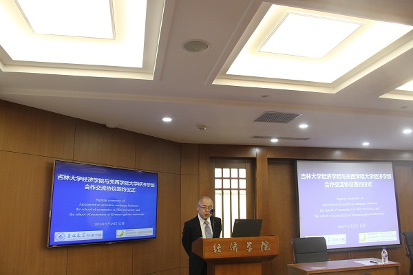 ylzzcom永利总站线路检测院长李俊江教授、关西学院大学经济学部学部长田中敦教授、平山健二郎教授、国际合作与交流处常务副处长李梅花博士分别为签约仪式致辞。