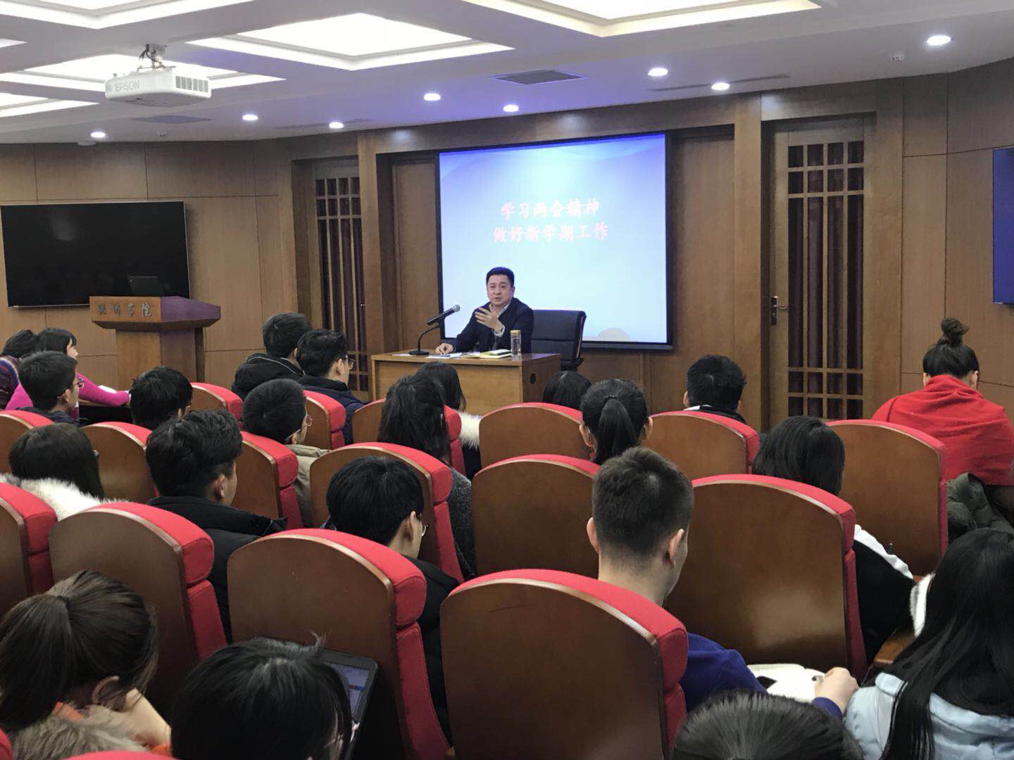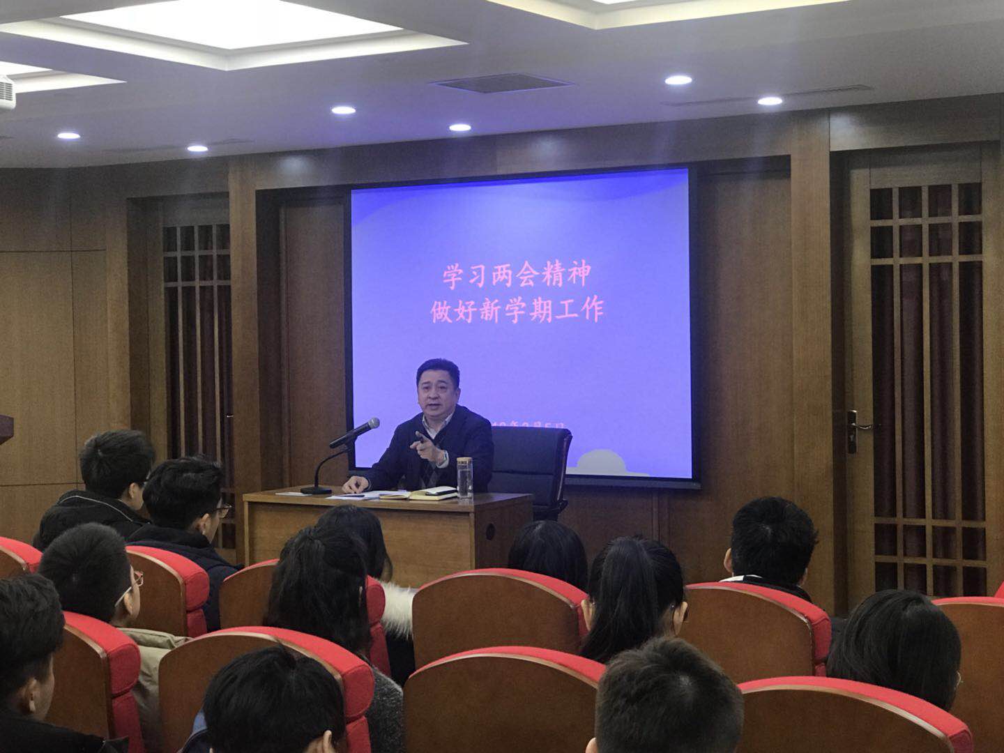 为深入学习领会“两会”精神,ylzzcom永利总站线路检测党委于2018年3月5日下午在东荣804会议室召开“学习两会精神、部署新学期工作”会议。学院各系主任、行政人员、本科生及研究生全体学生干部参加了会议,会议由党委书记陈密主持。