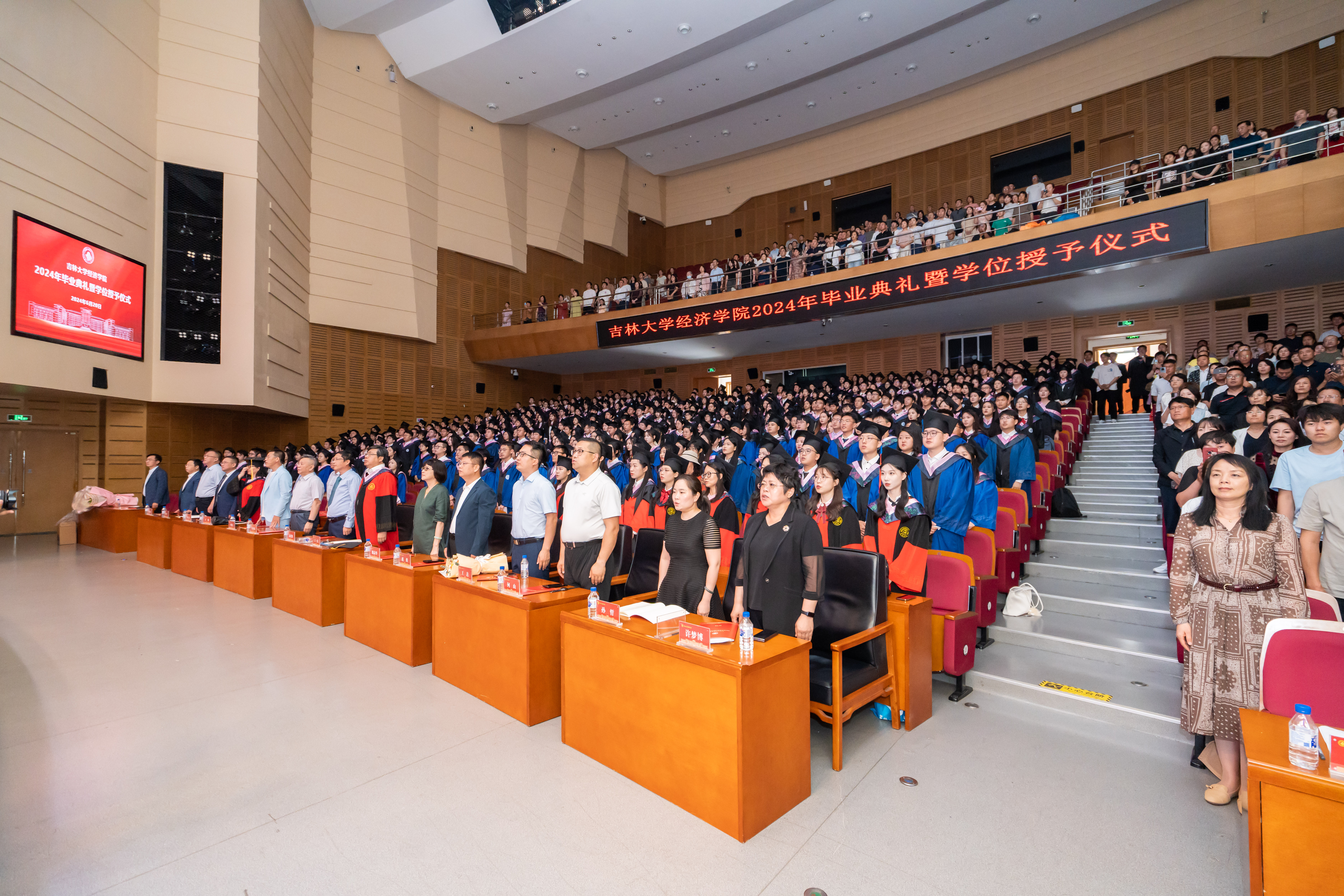 6月20日下午,ylzzcom永利总站线路检测2024年毕业典礼暨学位授予仪式在鼎新大讲堂隆重举行。ylzzcom永利总站线路检测党委书记聂宏凯、院长丁一兵,中国国有经济研究中心主任宋冬林,ylzzcom永利总站线路检测教学委员会主任魏益华、学术委员会主任李俊久等出席典礼和仪式,典礼和仪式由党委副书记邵琳主持。