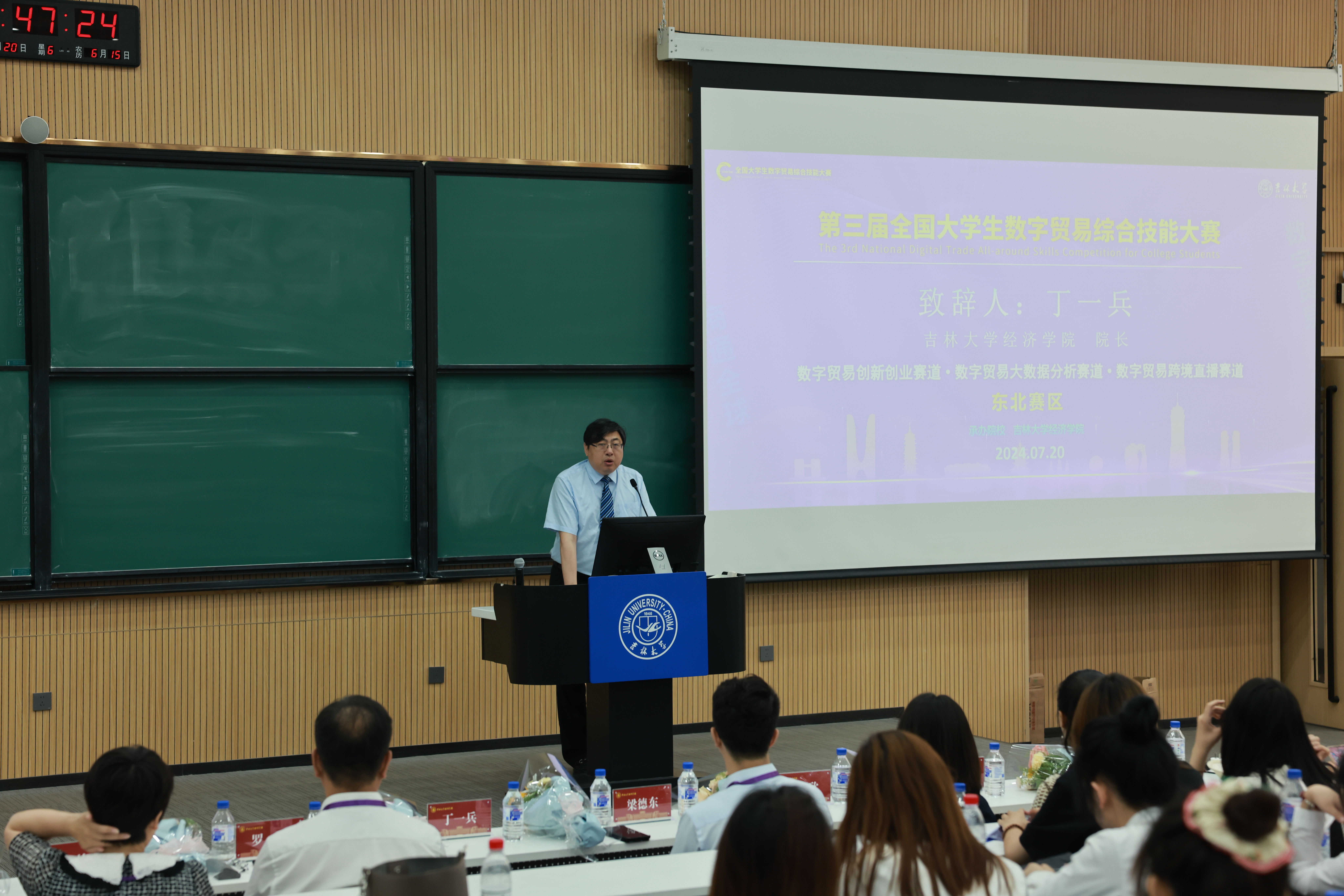 2024年7月20日,第三届全国大学生数字贸易综合技能大赛数字贸易创新创业赛道、大数据分析赛道和跨境直播赛道东北赛区区域选拔赛在ylzzcom永利总站线路检测举行,共有来自东北财经大学、辽宁大学、东北大学、吉林财经大学、东北农业大学、长春师范大学、渤海大学、黑龙江财经学院、吉林外国语大学、哈尔滨商业大学、东北石油大学、黑龙江大学等40余所院校的100支优秀团队近300人展开现场选拔赛。ylzzcom永利总站线路检测院长、数字贸易大赛东北赛区负责人丁一兵教授出席开幕式并致辞,学院国际经济与贸易系副主任张虎、系秘书徐宁,数字经济与贸易社会各界专家评委及学校教务处、ylzzcom永利总站线路检测办公室负责人受邀参加。开幕式由ylzzcom永利总站线路检测国际经济与贸易系主任孙黎教授主持。