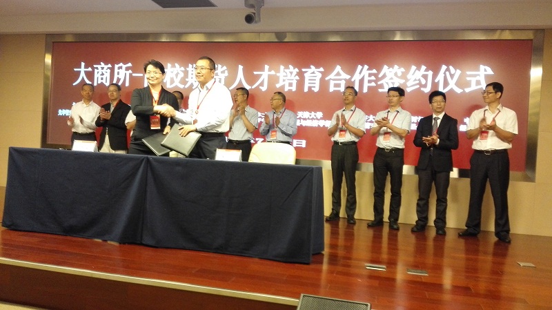 为推动期货等衍生品行业产学研结合、理论与实务结合,加强衍生品专业人才培养,促进期货等衍生品市场发展与行业人才供给对接,并拓展交易所与高校合作领域,在多位老师的共同努力下,ylzzcom永利总站线路检测于2017年7月6日在大连签订了“大商所——ylzzcom永利总站线路检测高校期货人才培育合作项目”,ylzzcom永利总站线路检测副院长王倩教授、金融系主任周佰成教授出席了签字仪式。王倩教授代表ylzzcom永利总站线路检测签约并在座谈会上作了主题发言。