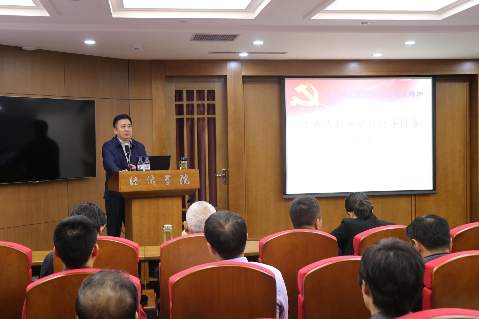 最后,陈密书记在总结讲话中提到,李晓院长就十九大精神的解读充分结合了经济学研究的实践,对全体教职工更好地学习和理解十九大报告中的新思想、新理论、新提法具有重要意义,希望全体教师要进一步深入学习贯彻党的十九大精神,深入推进“两学一做”学习教育常态化制度化,加强学习成果与实践相结合,充分发挥党员先锋模范作用,不忘初心、为学院和学校的发展建设不懈奋斗。