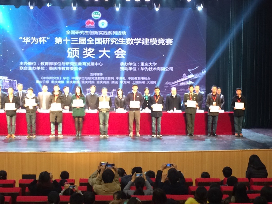2016年12月,由教育部学位与研究生教育发展中心主办,重庆大学承办的第十三届全国研究生数学建模竞赛颁奖大会在重庆大学隆重举行。全国456家研究生培养单位成功参加了本届数学建模大赛,参赛队伍数达到10019支,参赛研究生达到3万余人,比赛规模达到历届之最。