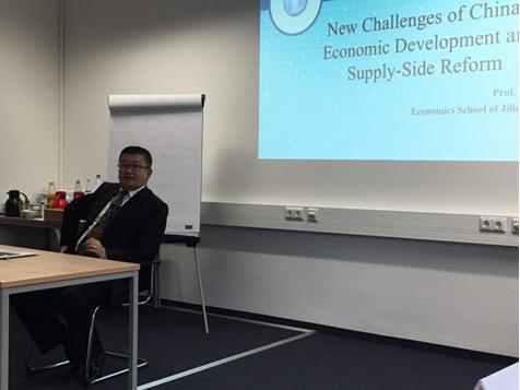 在德国杜伊斯堡大学,李晓教授一行与杜伊斯堡东亚经济研究所的所长Markus Taube、Paul Scalise、Werner Pascha 、Shuanping Dai、Yuan Li等教授、莱比锡大学的Gunther Schnabl教授、罗马美国大学的Alessandra Cappelletti教授、埃森大学的Andreas Oberheitmann教授、中国社科院欧洲所李罡研究员等进行了学术交流。在主题为“一带一路与人民币国际化”学术研讨会上,李晓教授、李俊江教授和丁一兵教授分别作了“一带一路与中国地缘政治战略的形成”、“一带一路的内部挑战:结构失衡与供给侧改革”和“中国与一带一路沿线国家的贸易结构及其对人民币国际化的影响”的主旨演讲。