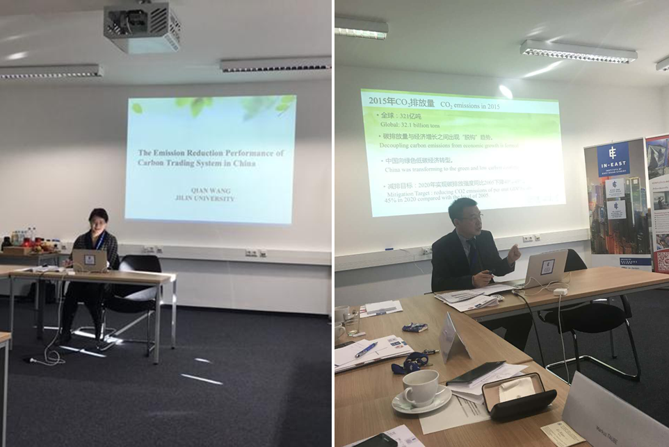 在主题为“可持续发展与碳市场”的学术研讨会上,王倩教授作了“中国碳市场的减排绩效”的主旨演讲。王文成教授受杜莉教授委托做了《我国统一碳排放权交易体系:在探索规律的基础上的构建》的发言。通过两天的学术会议,中欧学者深入交流了学术思想,分享了研究成果,并明确了进一步合作研究的方向。