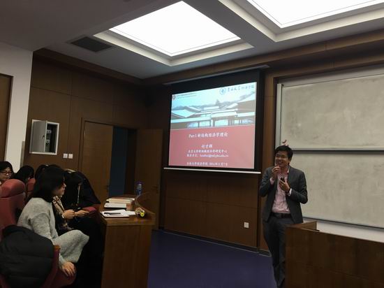 报告中,付才辉研究员首先介绍了新结构经济学的起源和发展情况。“新结构经济学(New Structural Economics)”一词由林毅夫教授提出和倡导。新结构经济学理论体系建立的第一个里程碑著作是林毅夫等在1994年著作的《中国的奇迹:发展战略与经济改革》,该书已被翻译为十多国语言,并成功地预见到了中国近二十年来所取得的成绩和面临的问题以及改革的路径;第二个里程碑著作是根据2007年英国剑桥大学的马歇尔讲座出版的《经济发展与转型:思潮、战略和自生能力》。2009年6月林毅夫教授在其出任世界银行高级副行长兼首席经济学家一周年的内部研讨会上提出以“新结构经济学”作为发展经济学的第三版,强调经济发展是一个产业、技术、基础设施、制度结构不断变迁的过程,在这个过程中既要有“有效的市场”也要有“有为的政府”。2011年3月,林毅夫应邀到耶鲁大学做著名的库茨涅茨年度讲座时,向经济学界正式宣告了新结构经济学的诞生。接下来他介绍了新结构经济学的主要观点和研究体系,他指出,新古典经济学是选择的科学、缔约的科学、结构的科学。结构安排是新结构经济学的研究对象,而新古典是新结构经济学的分析工具。 此外,付才辉研究员还对新结构经济学在产业转型升级研究中的应有做了深入讲解,并简要介绍了以林毅夫教授为创始中心主任的北京大学新结构经济学研究中心智库建设情况,最后详细回答了在场师生的提问。