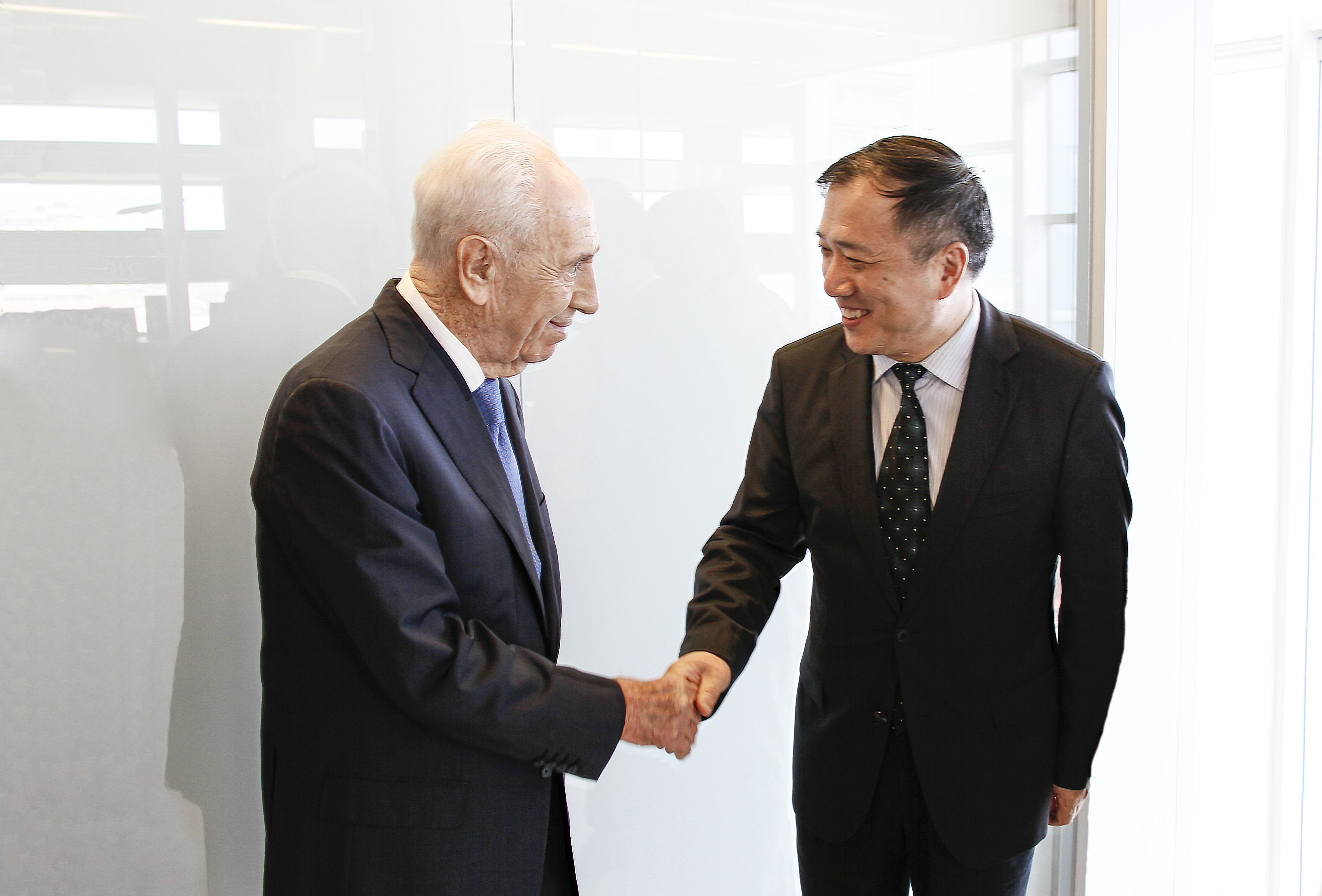 17日下午,代表团一行应邀访问了佩雷斯和平中心,与诺贝尔和平奖得主、以色列前总统西蒙·佩雷斯先生进行了简短会谈。佩雷斯先生亲切询问了第三届创新创业会议的进展情况,杨振斌就会议的成功举办及中国国内对会议的报道情况进行了简要介绍。